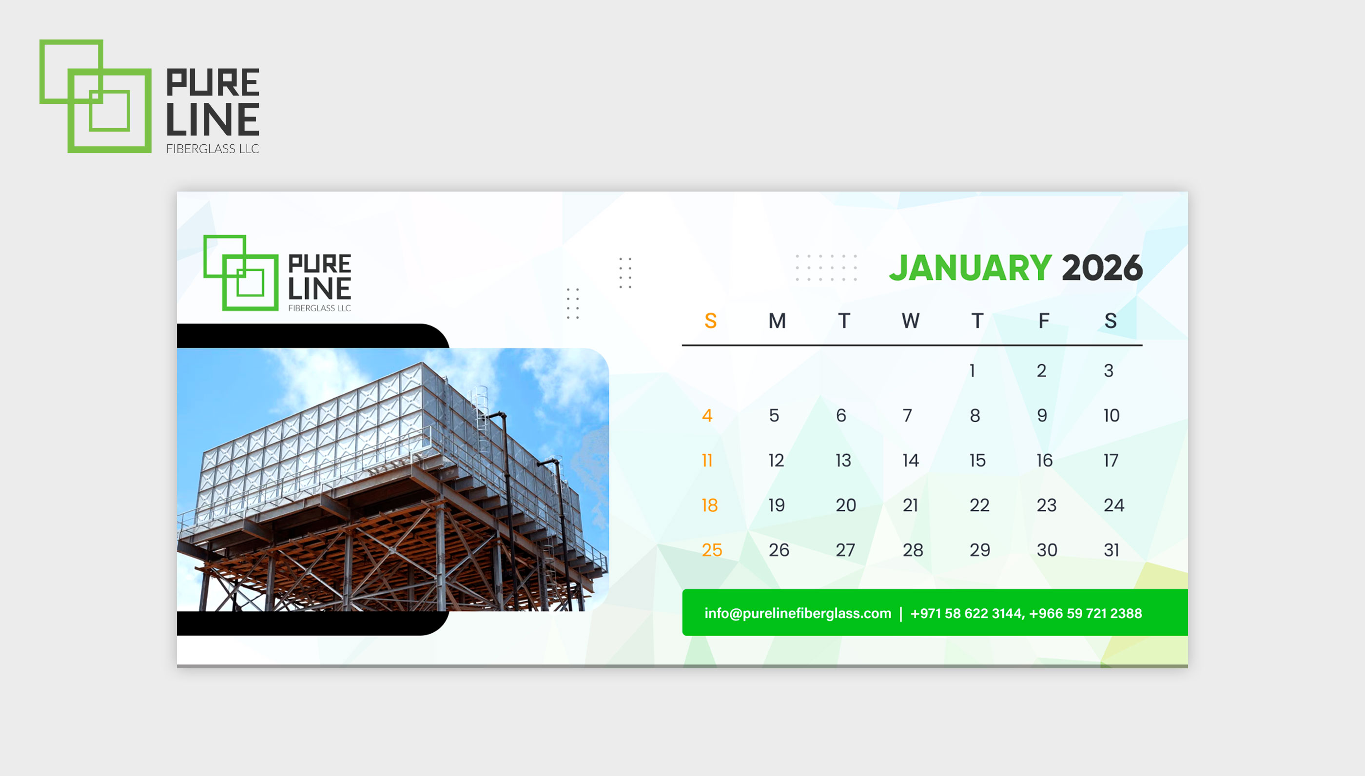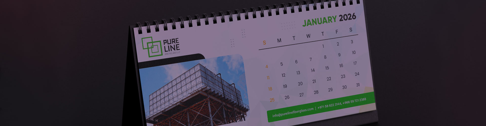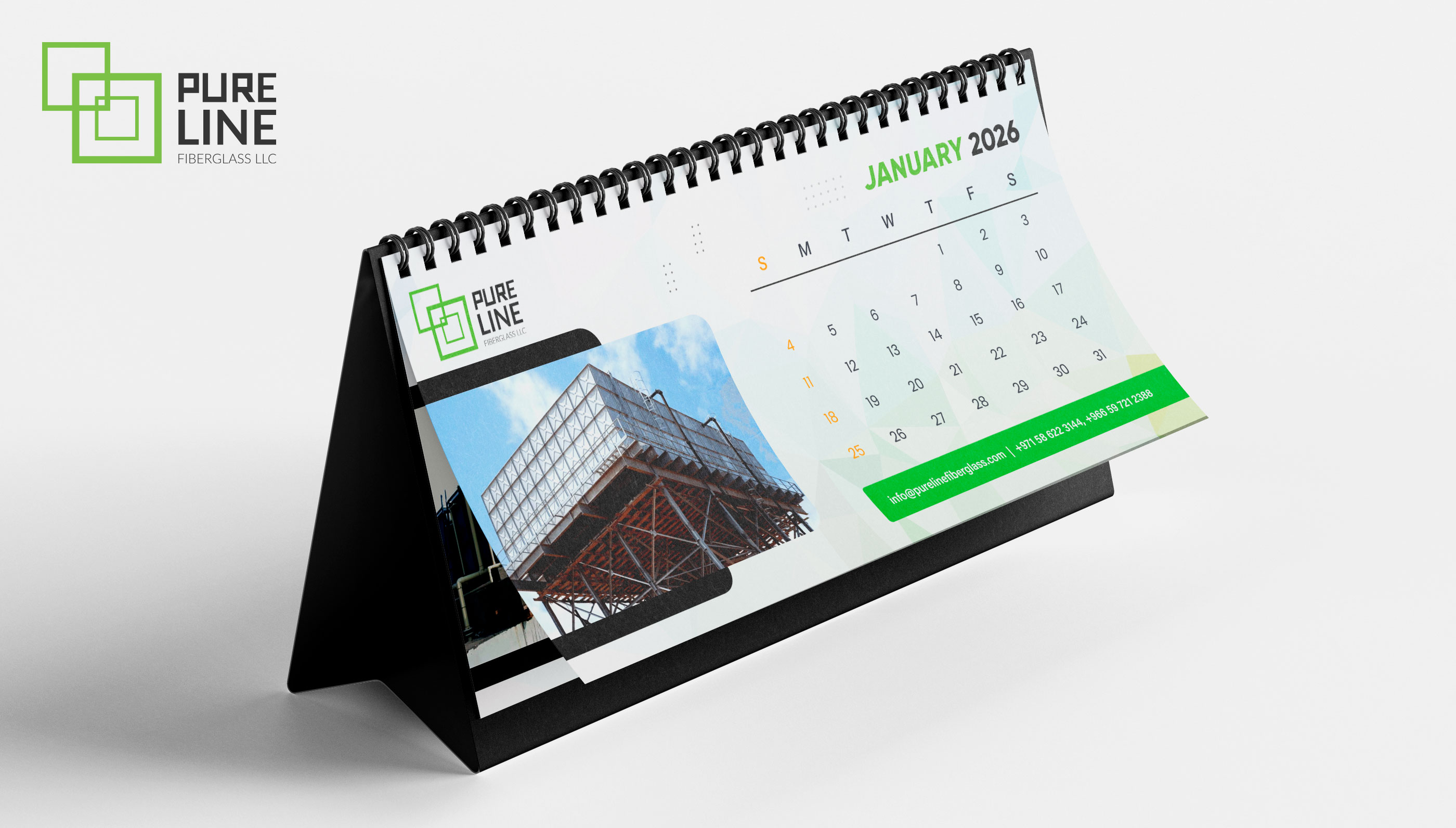 We designed and printed a custom calendar for Pureline Fiberglass, creating a