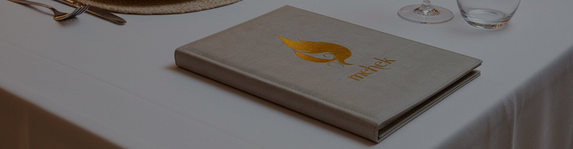 Restaurant Menu Folder. Premium Italian PU leather menu folder featuring a sleek finish and elegant gold foil logo branding on one side. Designed for durability and refined presentation in upscale hospitality environments.